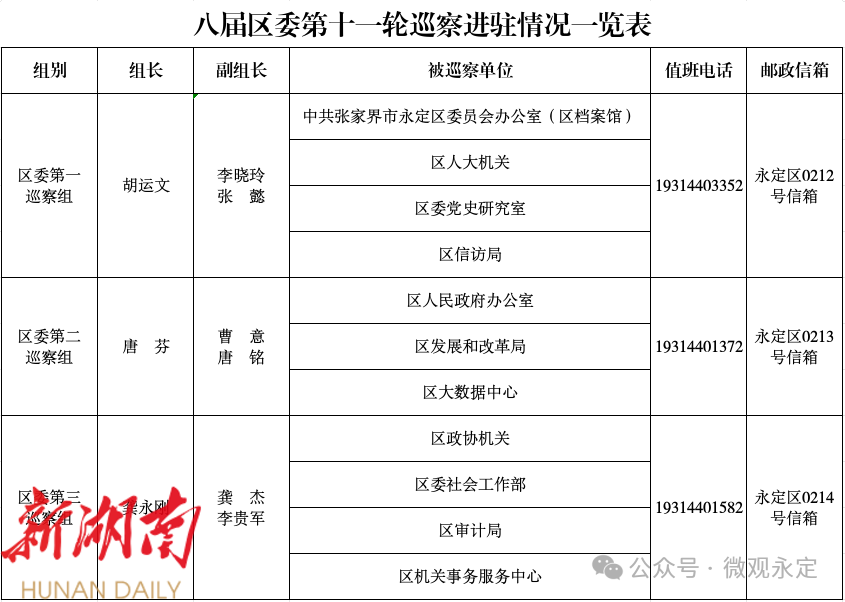 八届区委第十一轮巡察完成进驻(附各巡察组联系方式)