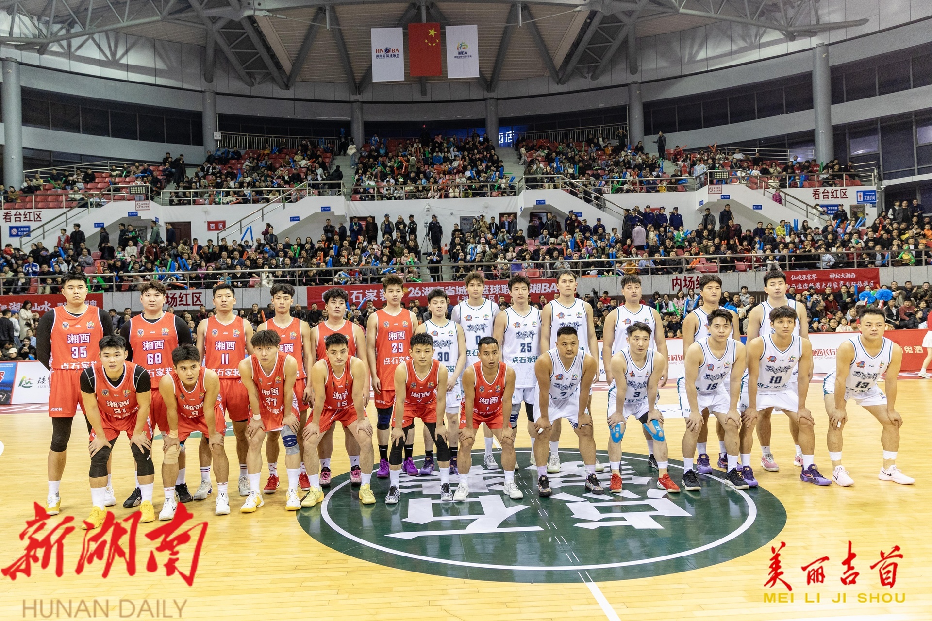 湘西队球员(红)与张家界队球员(白)在比赛前合影。