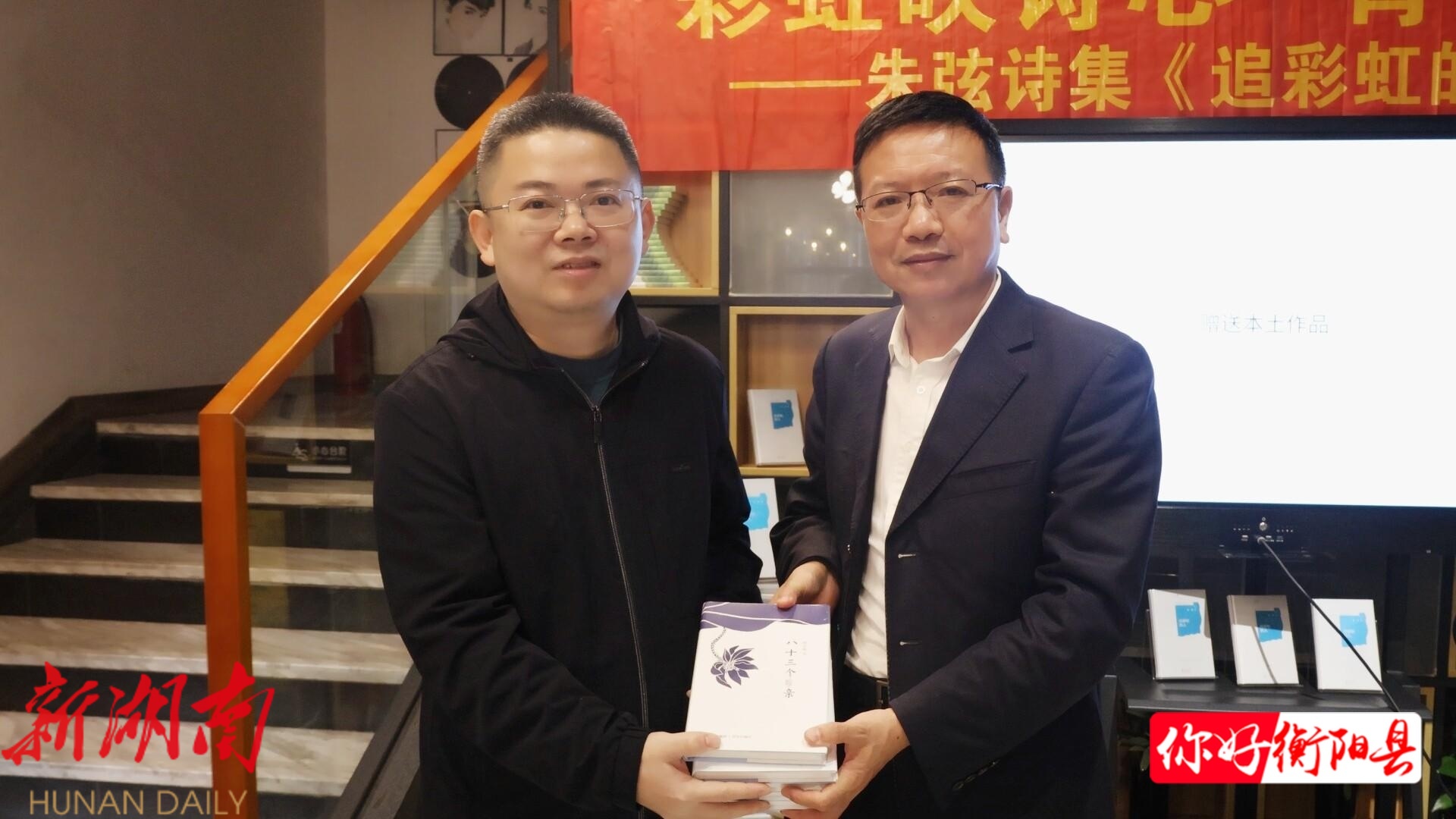 衡阳县融媒4月3日讯(记者:张兴宇 见习记者:王锦) 4月2日,“文润三湘·衡阳作家走进衡阳县”活动暨青年诗人朱弦诗集《追彩虹的人》分享会在县新华书店船山书城店举行,作家诗人代表与本土文学爱好者齐聚一堂,以诗为媒,围绕诗歌创作、故乡书写与时代精神等主题深入交流探讨,让文学的光芒照亮蒸阳大地。省作协名誉主席、省诗歌学会负责人胡丘陵,中国诗歌学会理事、湖南省诗歌学会副会长陈群洲,市委宣传部二级巡视员林新华,县委副书记、宣传部部长刘洋出席活动。
