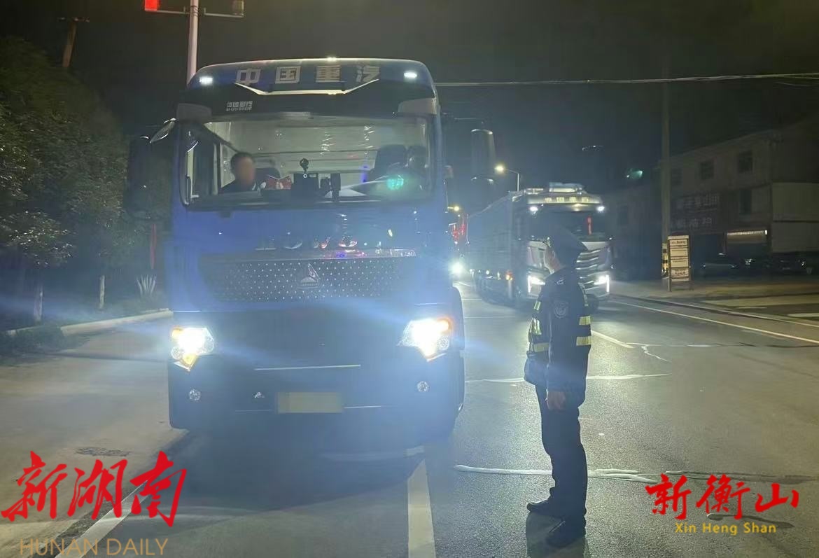当晚,衡山县交通运输综合行政执法大队货运和治超中队执法人员开展常态化夜间路面巡查时,发现一辆行驶中的普通货车行迹十分可疑,车辆行驶状态与装载普通货物存在明显差异,且未悬挂任何危险品运输相关标识。执法人员当即依法对该车辆进行拦停检查。