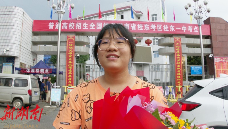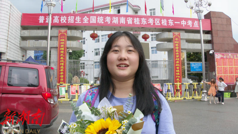 在桂东一中考点,不少家长早早在学校门口焦急地等待,有的家长手持鲜花,把鲜花第一时间递给完成高考的孩子。下面让我们来听听考生的心声吧。