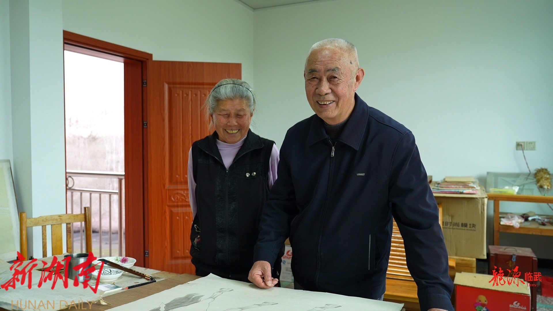 郭老介绍,他从老师讲课中慢慢懂得了绘画的技法,知道了画国画需要什么材料,而为了精进画艺,他常在雨天埋头苦练,自己画画能取得一定的成绩,离不开老伴的支持。