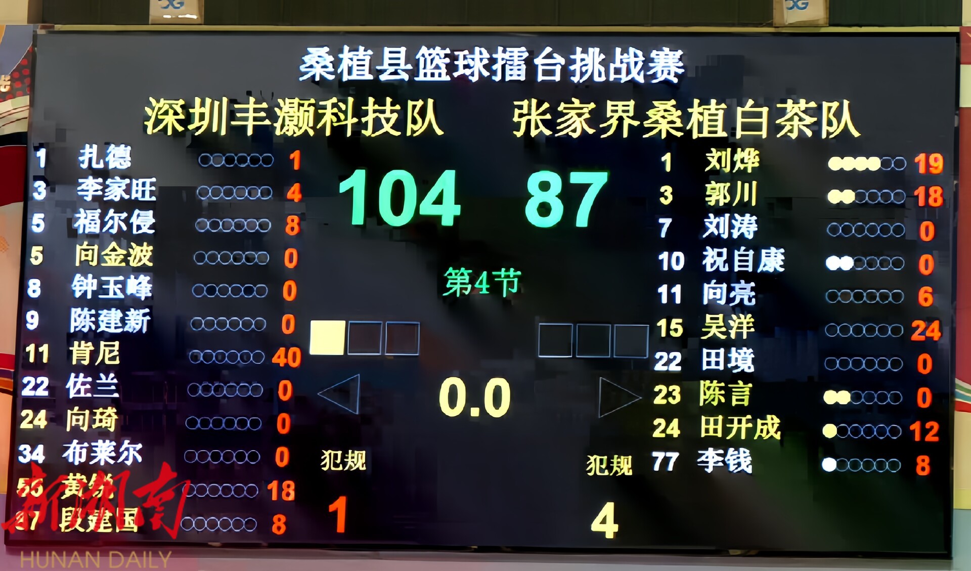 赛事尾声,组委会启用特别规则:最后60秒内每记进球均按三分计算。双方球员火力全开,攻防节奏拉满,最终,深圳沣灏科技队以104:87的比分拿下首场胜利。