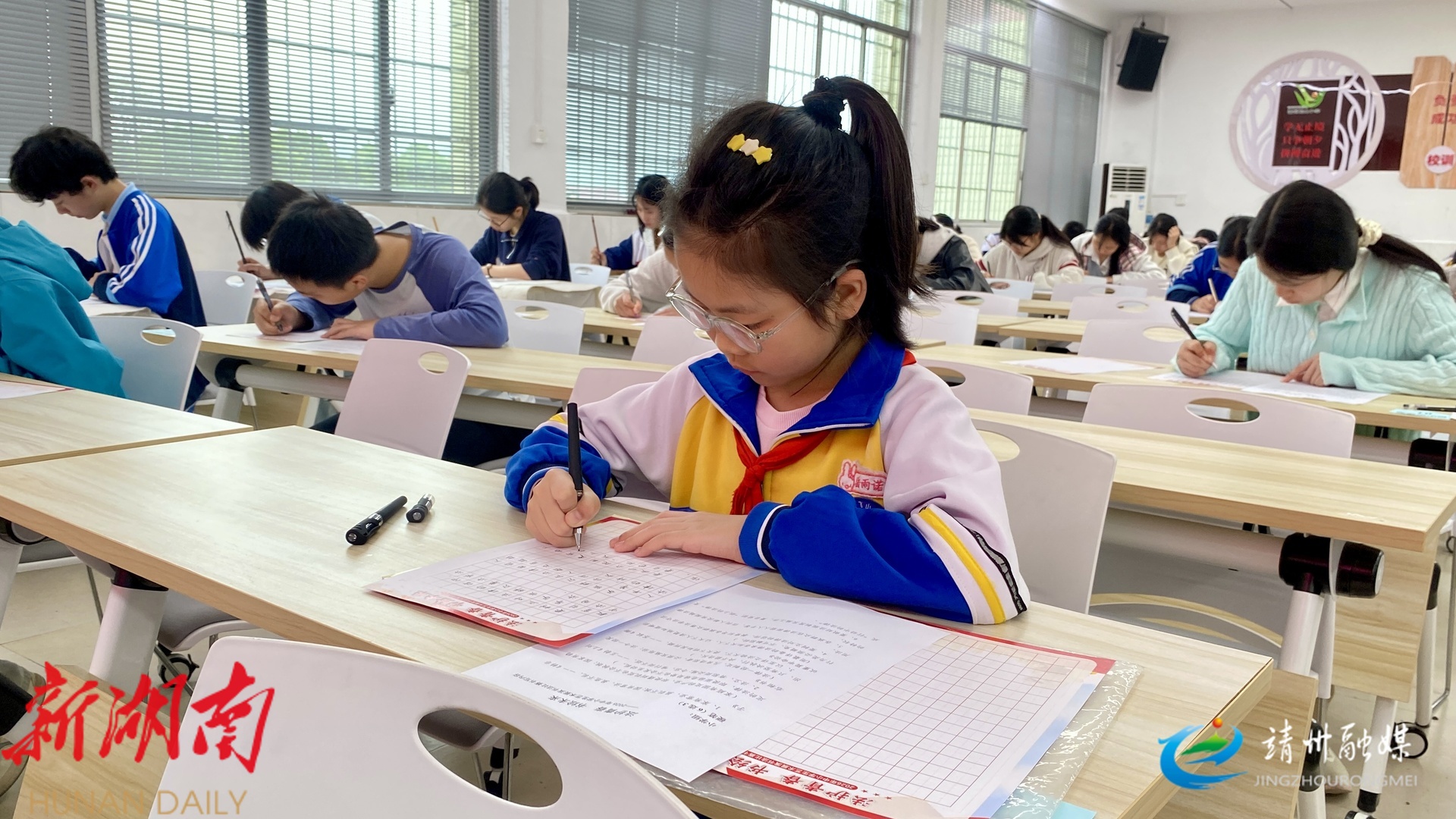 2026年靖州中小学艺术展演书法比赛现场(张秦 摄)