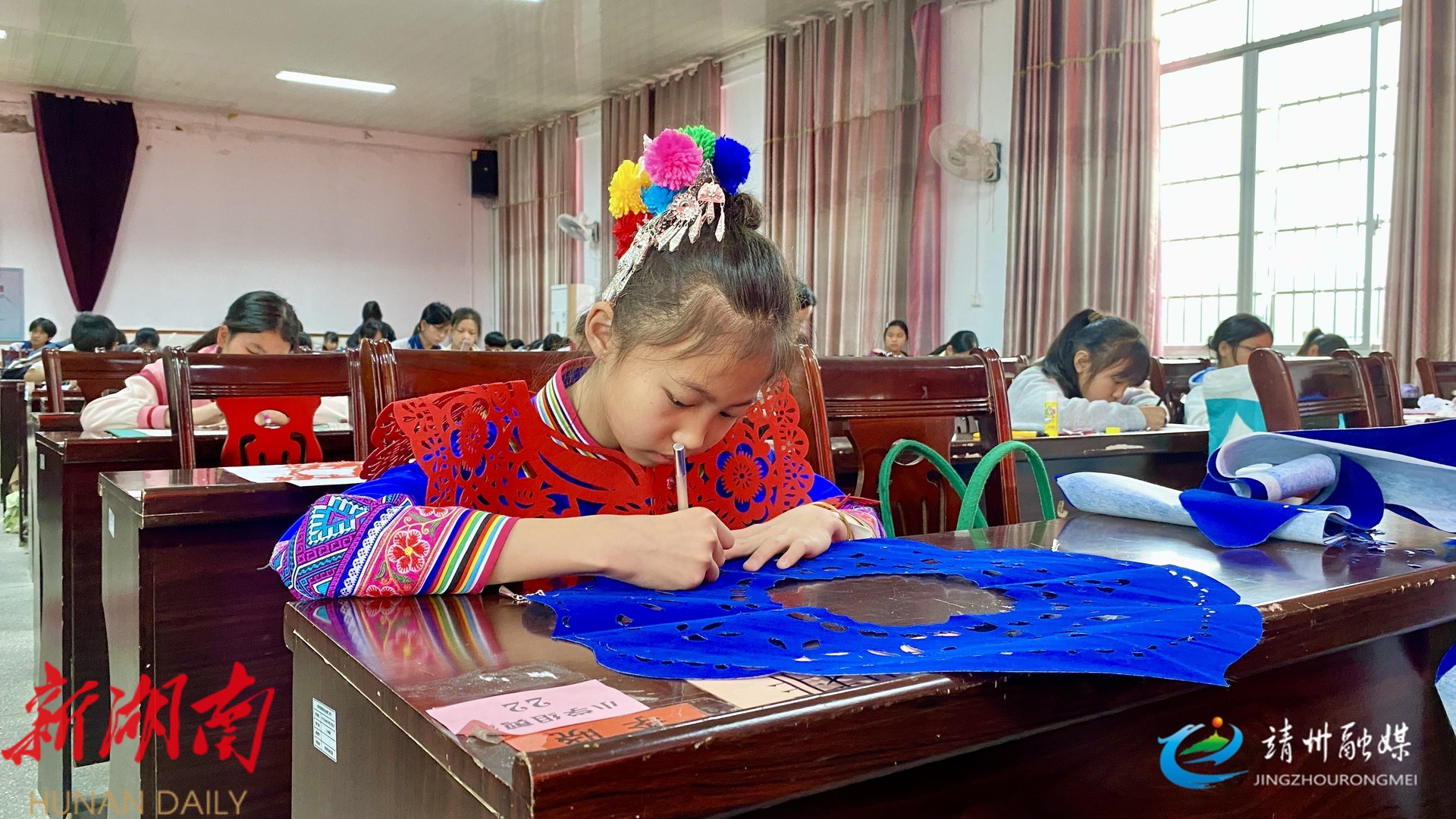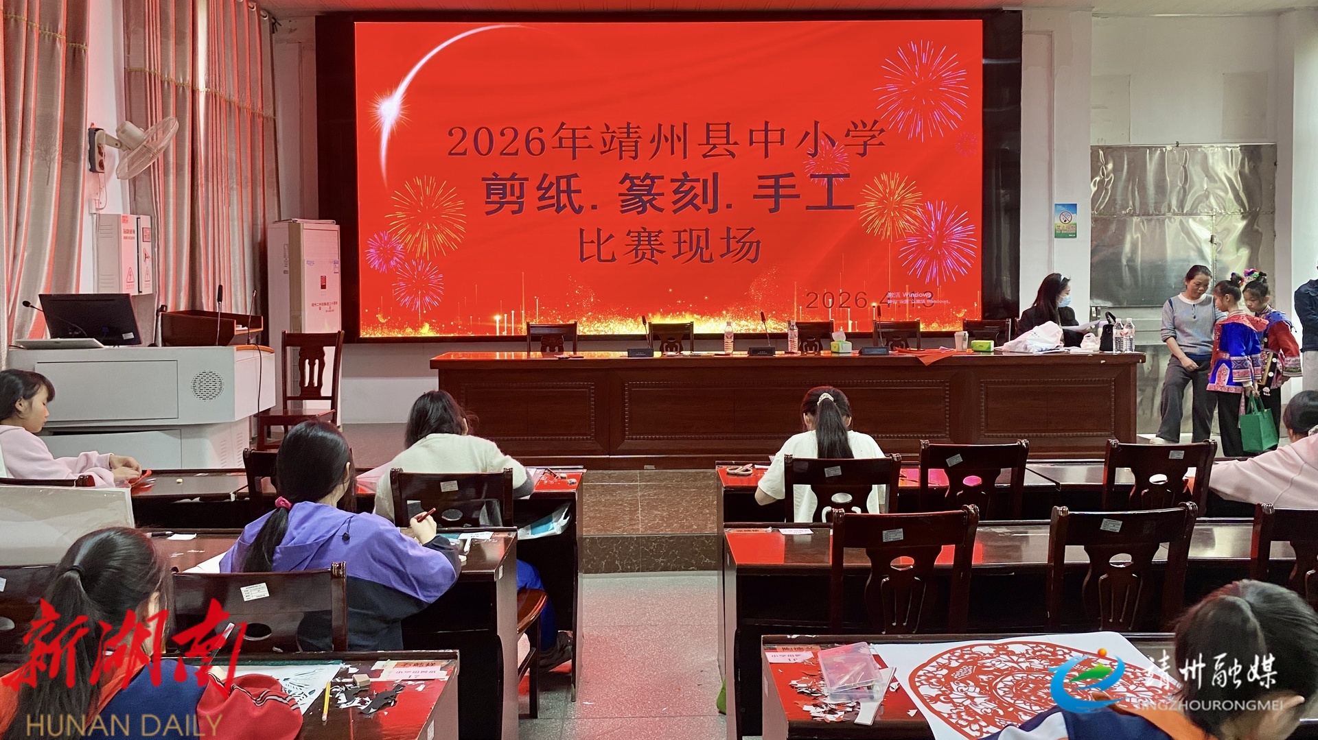 2026年靖州中小学艺术展演剪纸篆刻手工比赛现场(张秦 摄)