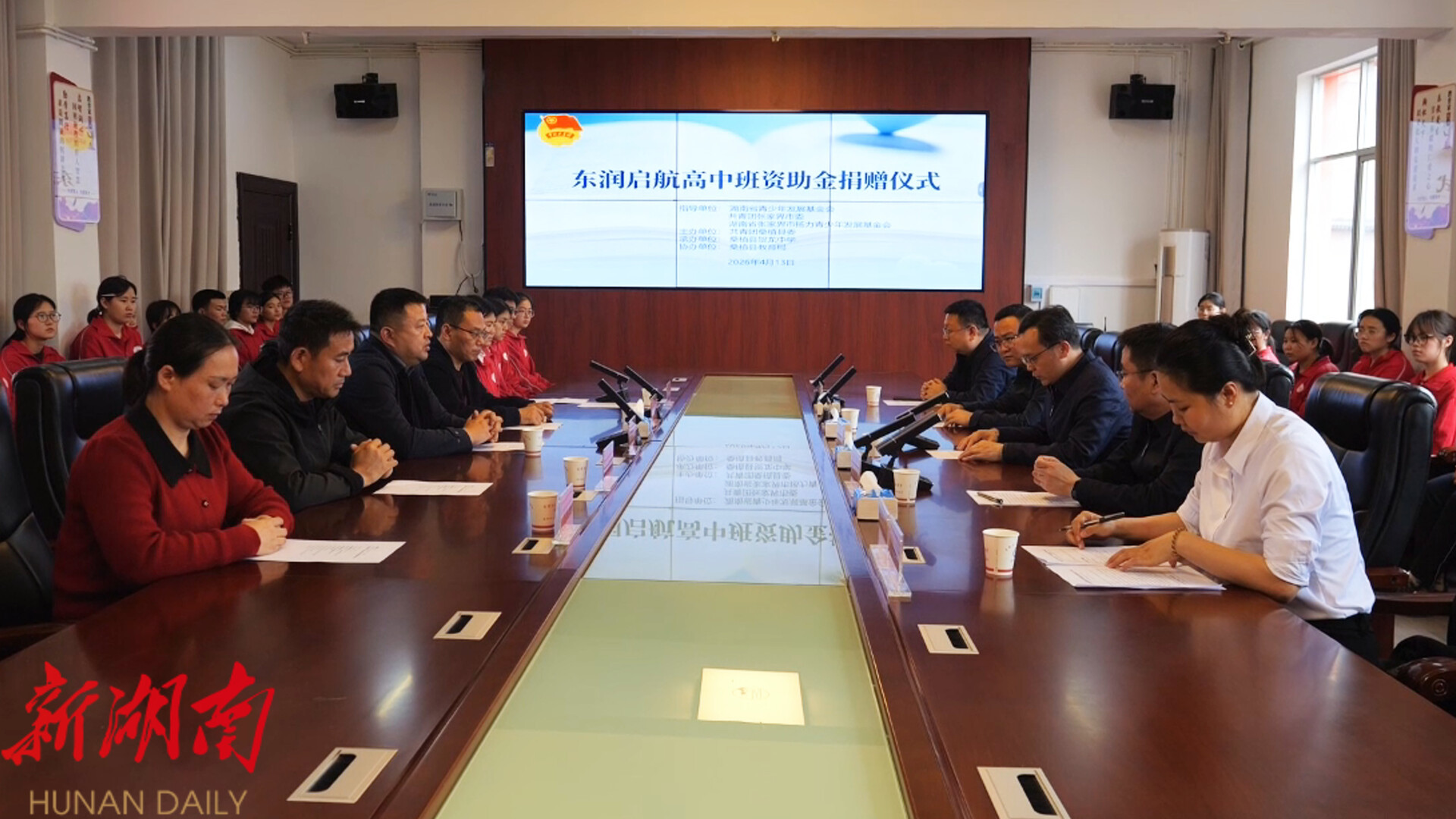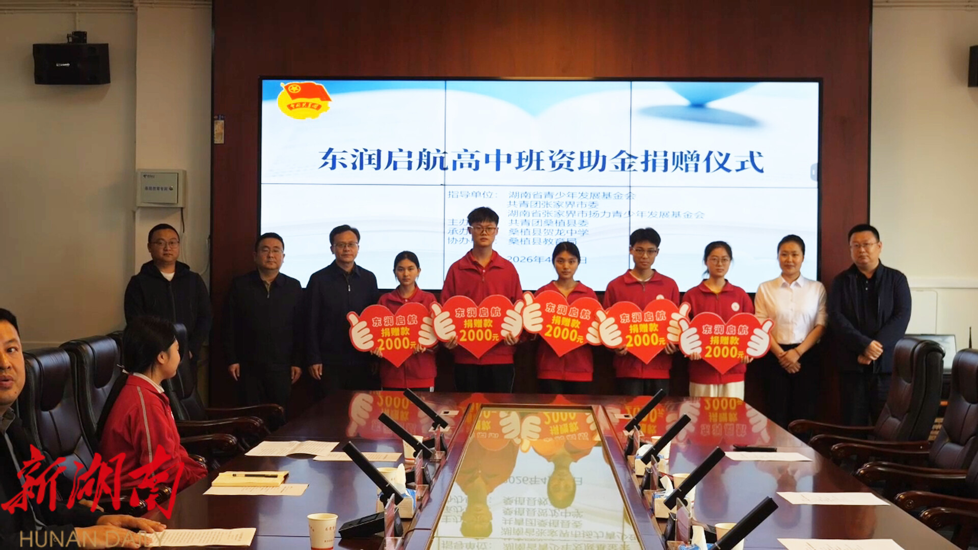 湖南日报·新湖南客户端4月14日讯(通讯员 钟彬豪)4月13日,桑植县 东润启航高中班 资助金捐赠仪式在贺龙中学举行。县委副书记、政法委书记王兴树,共青团张家界市委书记刘政忠参加。