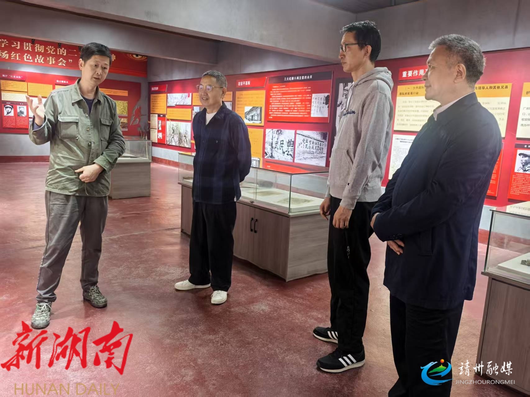 考察组先后走进中央红军一军团十五师(少共国际师)新厂(营盘界)阻击战陈列室、红六军团十八师某部宿营遗址、长征国家文化公园靖州段宣传教育基地及新厂战斗战前动员旧址孙氏宗祠,认真聆听革命历史讲解,重温新厂战斗光辉历程,深切感悟红军将士浴血奋战、不怕牺牲的峥嵘岁月。
