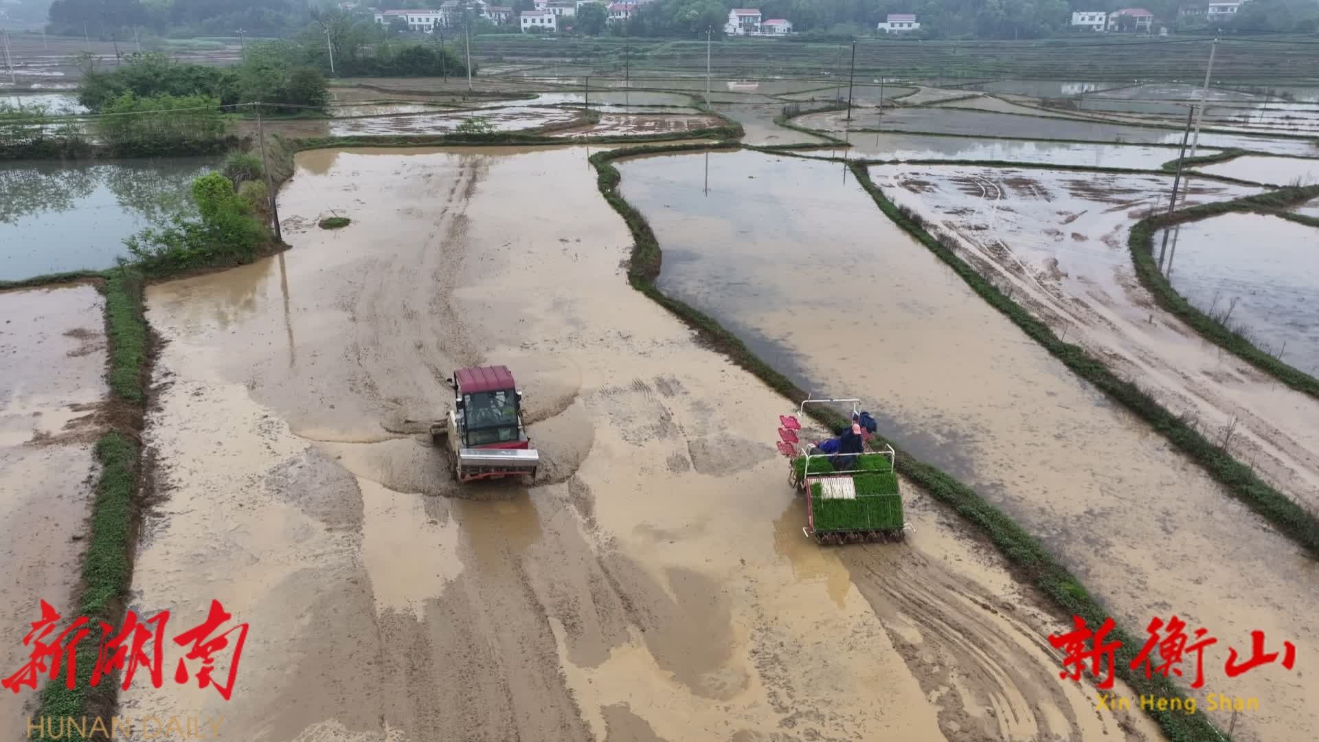 新衡山客户端4月15日讯(记者: 胡程远 周继晋) 4月13日,随着气温回升,衡山县长江镇胜利村抢抓农时,全面展开早稻插秧工作。田间地头,一台台插秧机、旋耕机来回穿梭,种粮大户们趁着晴好天气加紧作业,一幅生机勃勃的春耕画卷正徐徐展开。