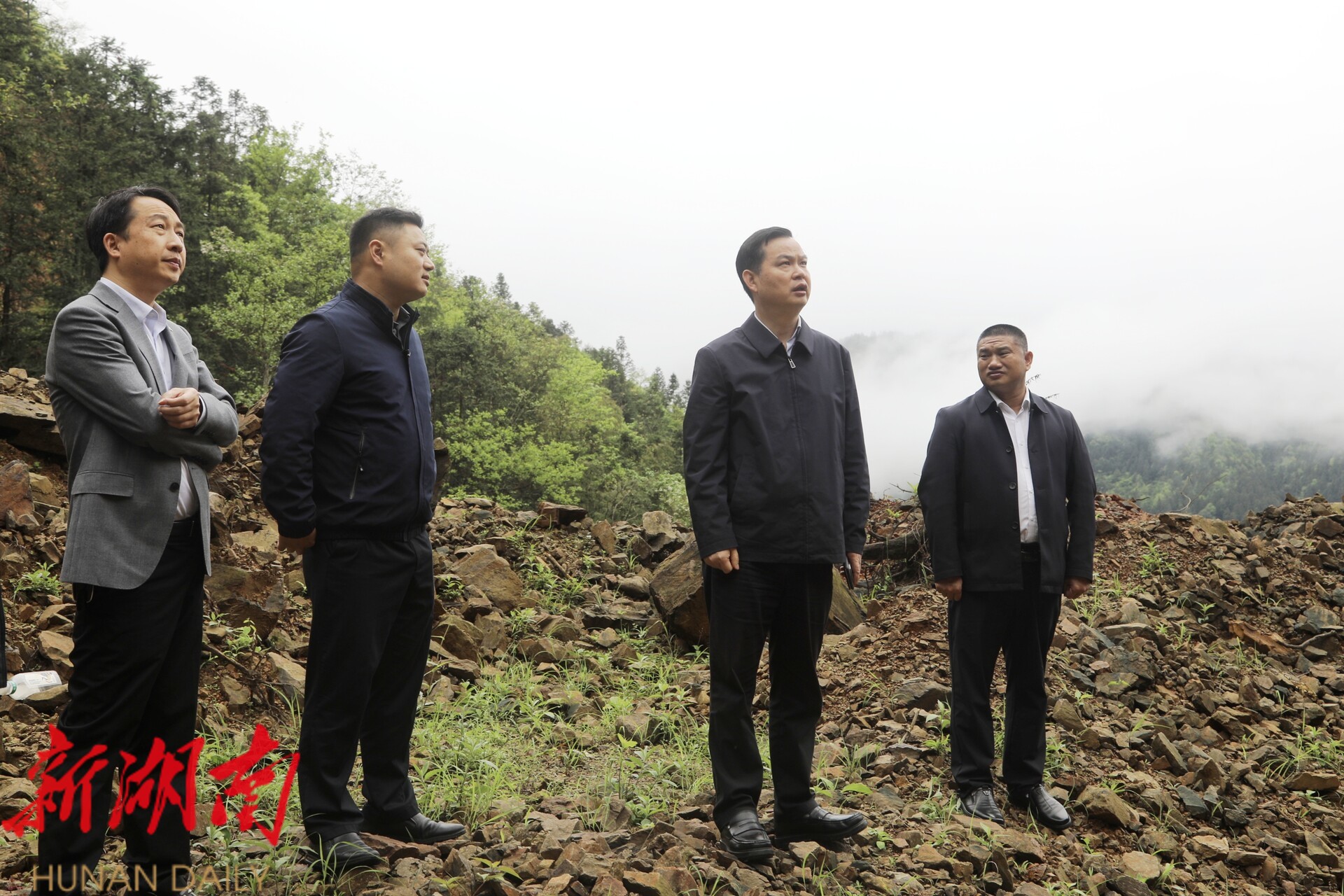 图为县委书记何德波一行实地察看地质灾害隐患点相关情况