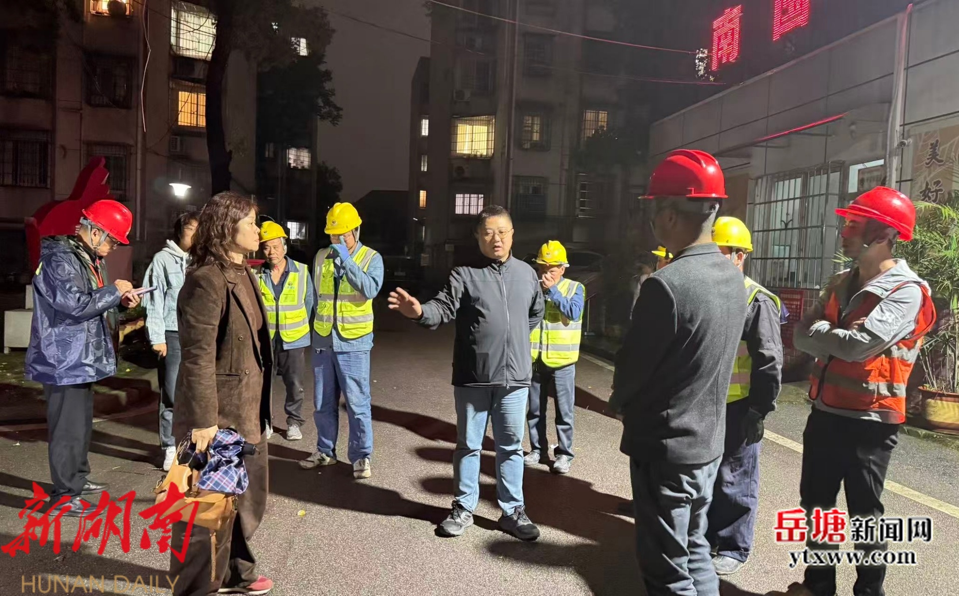 岳塘区住建局、栗塘社区、项目施工方现场召开简短工作会,共同研判雨情水情,细化项目施工区防汛措施、应急值守、隐患排查等工作,确保责任到人、措施到位。随后,项目施工队伍在栗塘社区开展夜间防汛备勤,全程待命、随时处置突发情况。