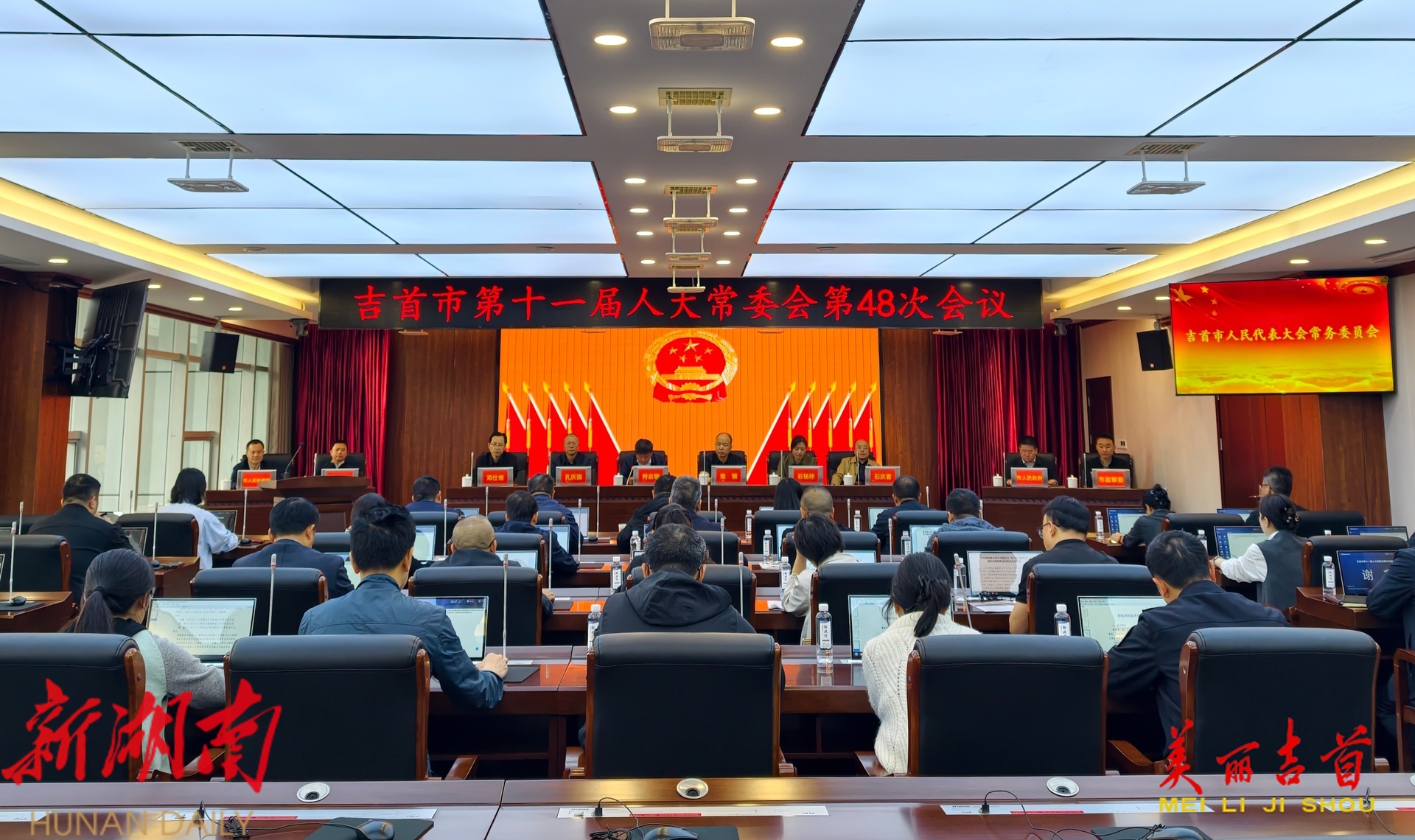 吉首市融媒体中心4月16日讯(全媒体记者 杨丹 谢黎黎)4月16日,吉首市十一届人大常委会第48次会议召开,市人大常委会党组书记、主任符启银主持会议,副主任张骥、孔庆国、石杨婷、邓仕常、石庆喜出席会议。副市长黄承业列席会议。