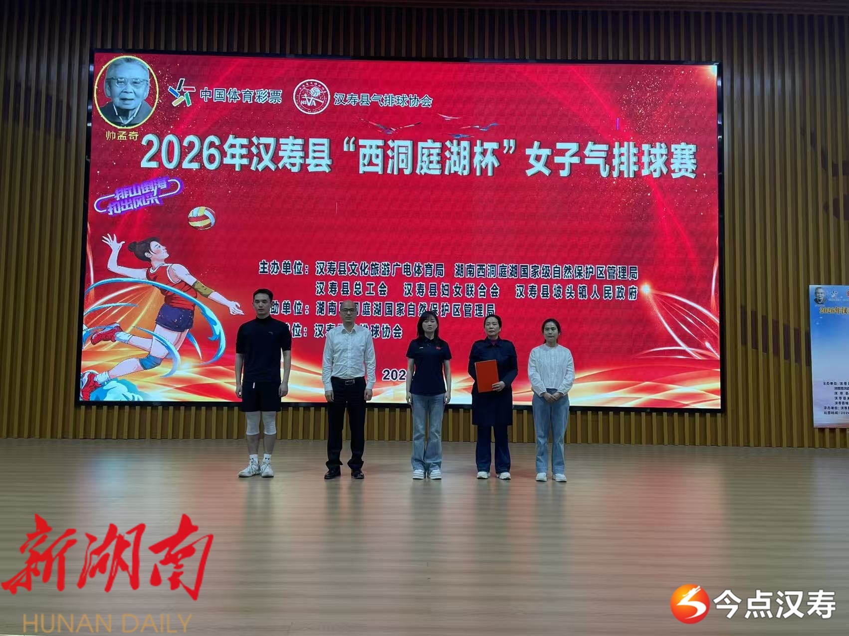 汉寿融媒4月17日讯(记者:郭宇昕) 4月16日,2026年汉寿县“西洞庭湖杯”女子气排球比赛在县军休体育馆拉开帷幕。县委常委、县委宣传部部长彭琪宣布开赛,湖南西洞庭湖国家级自然保护区管理局党组书记钟丽琴参加。