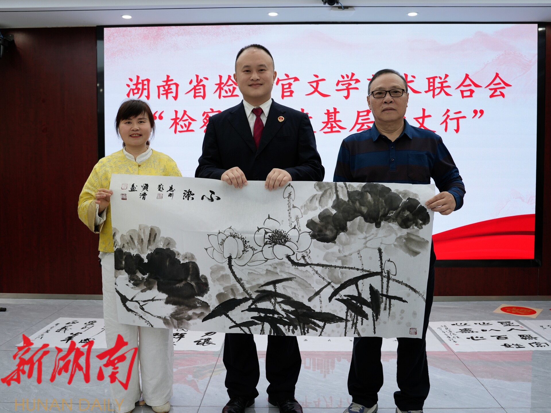 新湖南客户端4月17日讯(通讯员 郑湘)春风送暖千山秀,茶岭凝翠万象新。 4 月 17 日,湖南省检察官文学艺术联合会“检察文化走基层古丈行”活动走进古丈县人民检察院。湖南省人民检察院原党组成员、政治部主任徐哲劲,湖南省检察官文联主席曹志刚,湘西州人民检察院党组书记、检察长李丽,以及省检察官文联、中书协、省书协、省美协等艺术家一行参加活动。古丈县人民检察院党组书记、检察长龙浩主持本次活动。