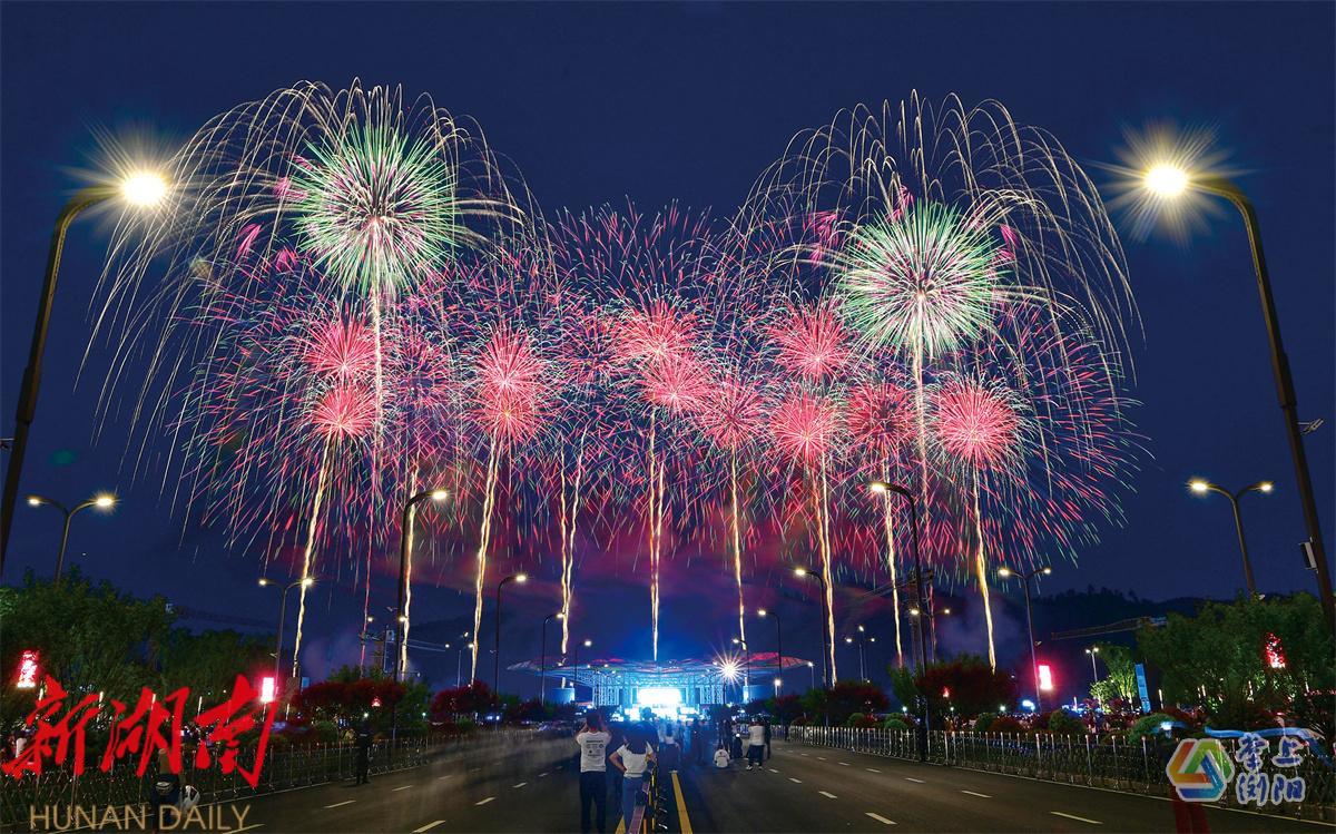 璀璨烟花绽放夜空,张雪由衷感叹浏阳烟花特别棒,名不虚传。记者彭红霞