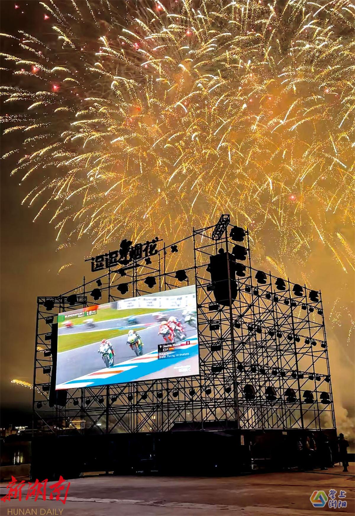 天空剧院现场大屏幕随即切换至WSBK荷兰站正赛直播画面。张雪机车再次承载国人的期待,驰骋于世界顶级赛场。当万里之外的赛道画面传回浏阳,漫天烟花与屏幕中的飞驰身影交相辉映,现场观众的情绪瞬间被点燃。