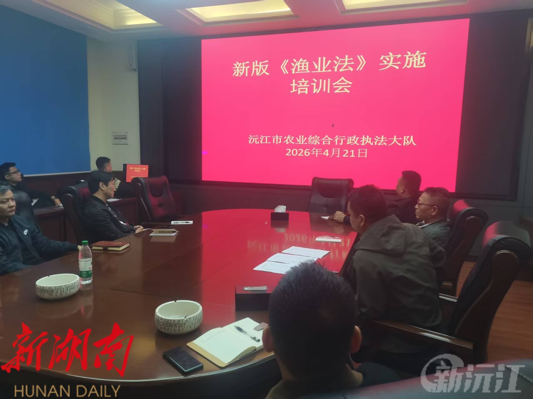 新沅江客户端4月21日讯 (通讯员 万威 左德明)4月21日,一场别开生面的“法治课”在沅江市智慧渔政指挥中心开讲——市农业综合行政执法大队全体执法人员齐聚一堂,集中学习新修订的《中华人民共和国渔业法》。这部将于5月1日正式施行的法律,为渔业资源保护撑起了更加坚实的法治“保护伞”,也标志着洞庭湖生态守护迈入有法可依、执法必严的新阶段。