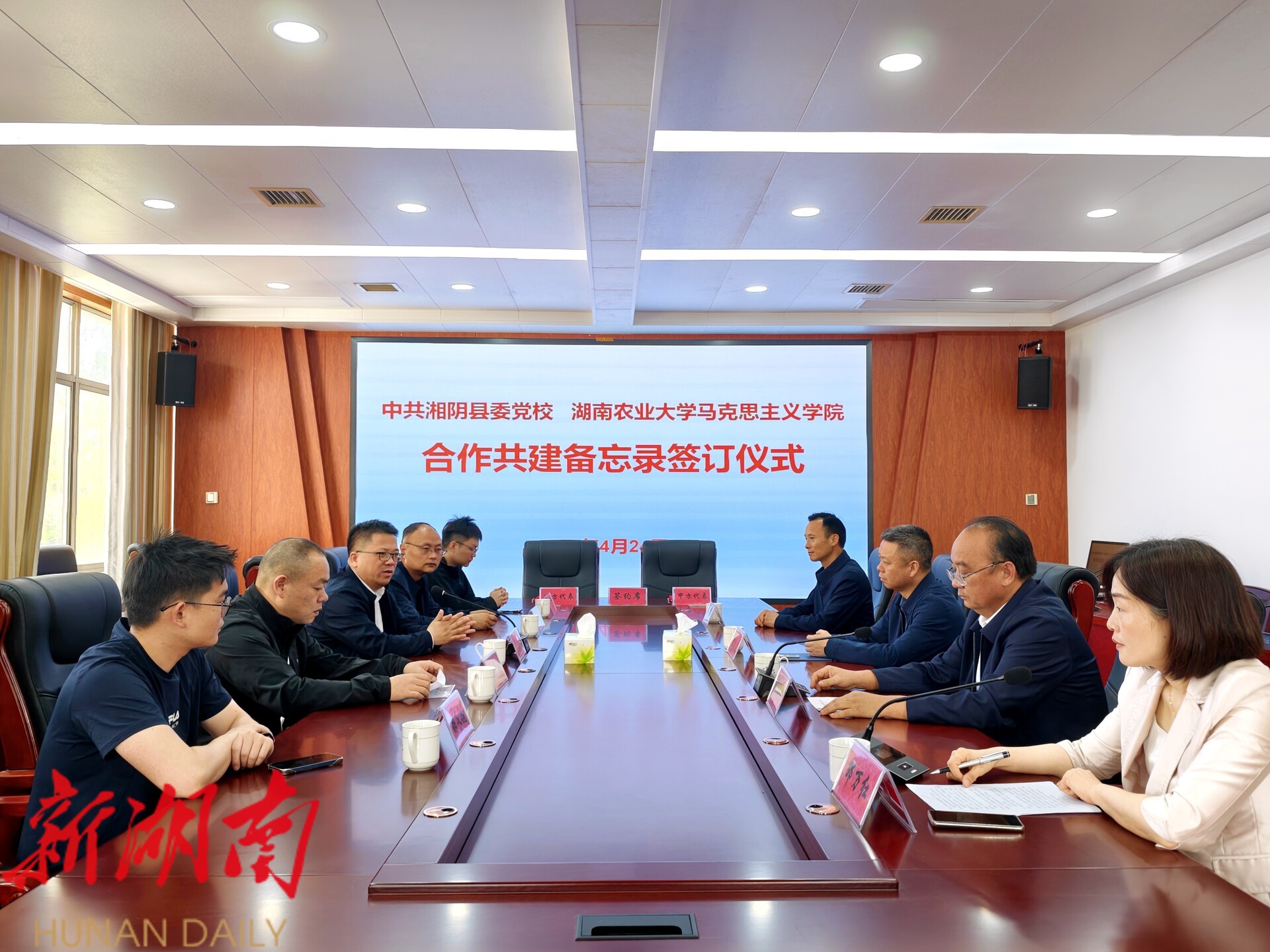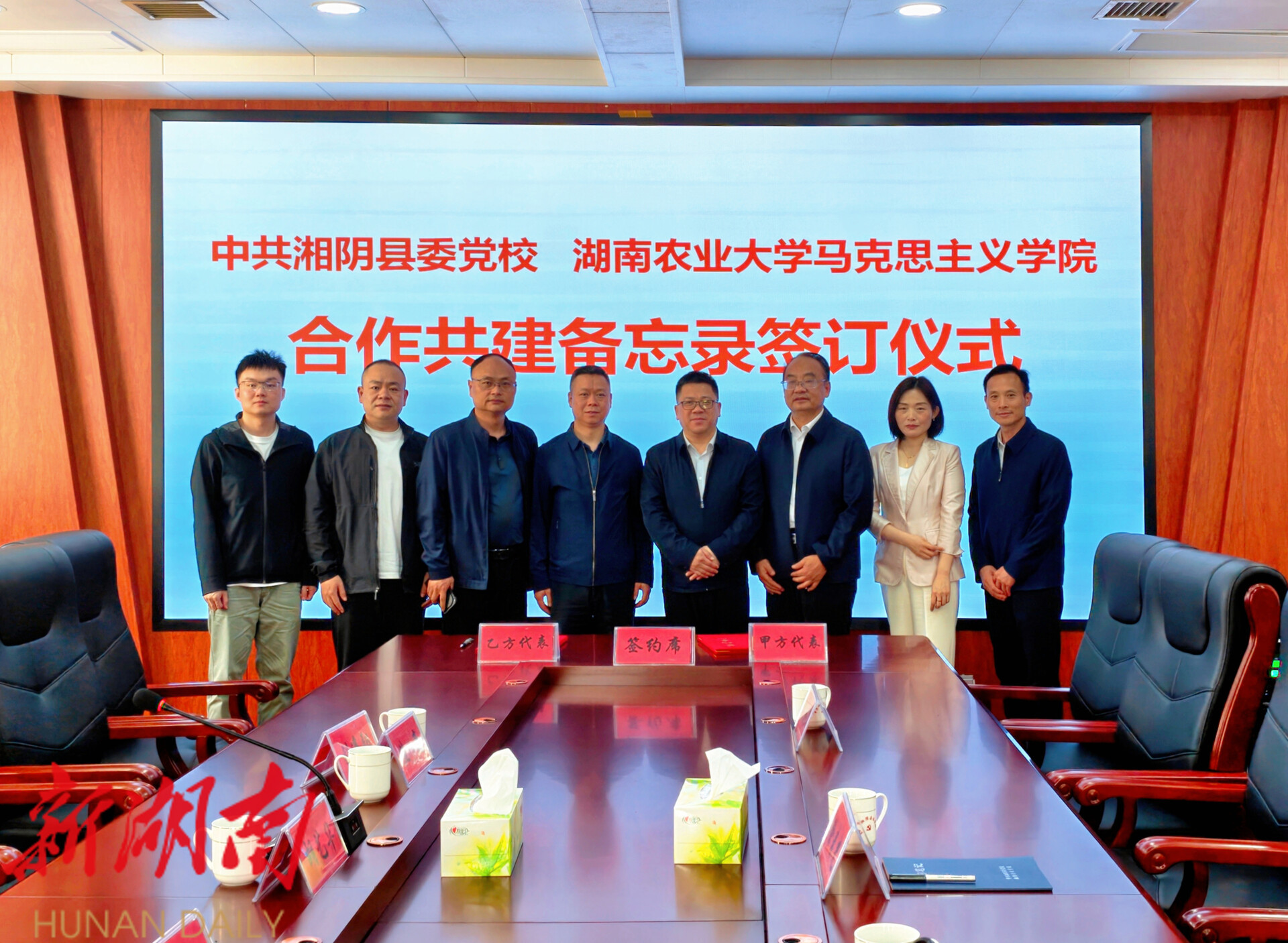 湖南日报·新湖南客户端4月24日讯(通讯员 徐晚晴)如何让高校学术研究走出“象牙塔”、扎根基层土壤?怎样让基层实践探索跳出“第一线”、走进高校课堂?4月24日上午,中共湘阴县委党校与湖南农业大学马克思主义学院签署合作共建备忘录,将在课题研究、学术平台、特色课程、人才培养、理论宣讲五个方面开展深度合作,探索地方党校与高校马院协同发展新路径,实现“学术资源下沉、实践智慧上升”的双向赋能。湖南农业大学马克思主义学院院长胡艺华,湘阴县委常委、组织部部长徐春光出席签约仪式。