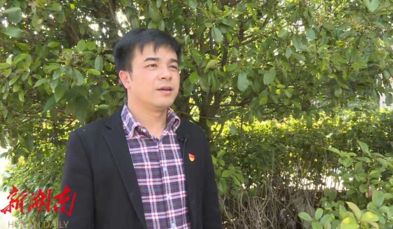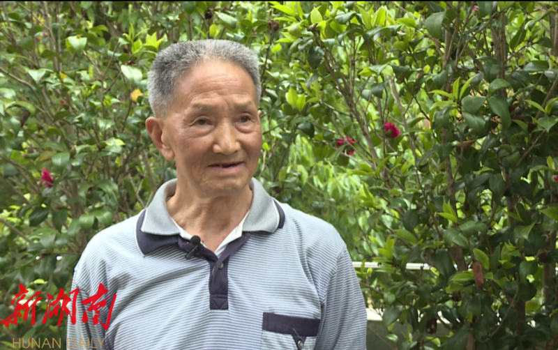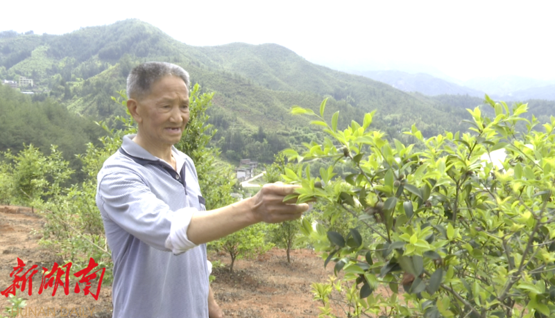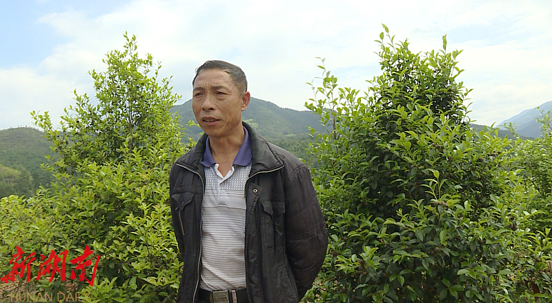 杨岭村村民邓修桥:我们从(20)09年开始,感谢邓(老)支书给我们搞这个茶油开发发财致富道路,到现在我已经有30亩,一般一年有一万到两万(元),丰产年有4到5万(元),感谢邓(老)支书帮我们指导的发财之路,现在已经奔小康。