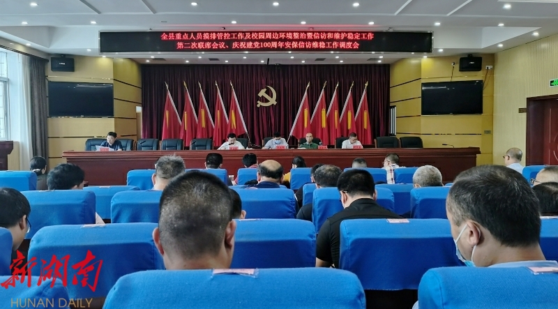 会议安排部署了全县重点人员摸排管控工作及校园周边环境整治工作;开展了“平安建设”工作、维稳工作业务培训;通报了我县当前维稳和信访形势。