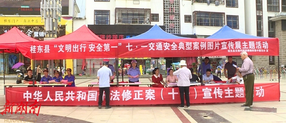 桂东县融媒体中心6月25日讯(记者 李亚芬)6月25日上午,县交通问题顽瘴痼疾集中整治行动领导小组相关成员单位在罗霄广场开展“文明出行 安全第一”七·一交通安全典型案例图片宣传展主题活动,提升全民交通法规意识、安全意识、文明意识。