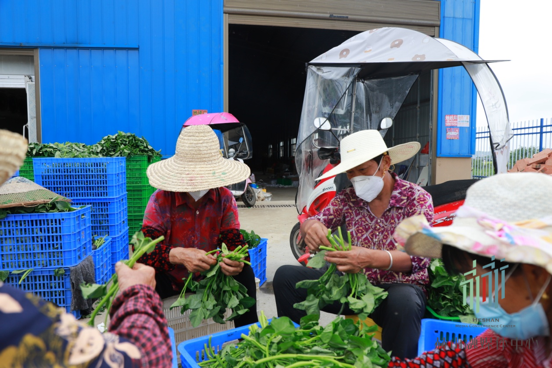 合作社负责人 杨利民一边扎着手里的 空心菜 ,一边介绍:“ 今年的国家的政策好、蔬菜价格基本稳定;天气也好,风调雨顺; 我们基地 上半年 蔬菜 实现了丰收。收了这批 辣椒 ,我们准备腾一片地出来种些秋丝瓜。”
