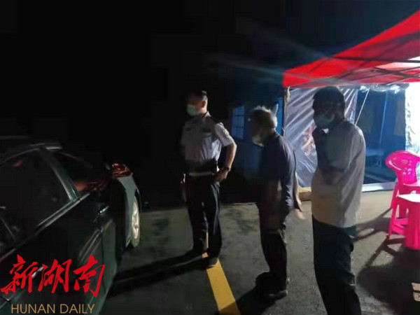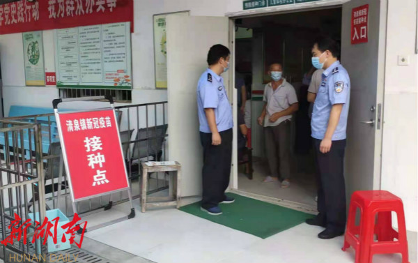 清泉镇地处湘赣边界,东、南、北三面与江西省遂川县接壤,是省际边界上的一座小城镇。此次新冠病毒德尔塔变异株疫情暴发后,清泉镇迅速做出反应,紧急设置了秋坪防疫咨询服务点,搭建起帐篷,并且在帐篷旁悬挂起了一面鲜红的党旗,清泉派出所党员民警以及局乡村振兴工作队与这面党旗日夜驻守着桂东东大门,严防疫情的输入。党员们主动担起责任,坚守一线执勤岗位,严防死守,冒着酷暑对来往车辆进行严格的登记检查制度。登记人员信息、查看两码及接种疫苗情况、测量体温,确认过往人员无异常情况后,方可通行。