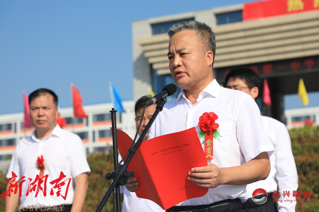 梁成谷指出,近年来,市委、市政府牢记总书记嘱托,坚持教育优先发展战略,持续加大投入力度,办人民满意的教育,教育民生得到大幅度改善,教育发展得到了重要保障,办学条件不断改善,教育质量大幅提高,中高考屡创佳绩,人民的教育获得感日益增加,全市教育迈上优质均衡、高质量、现代化发展快车道。永兴一中新校区的建成,就是全市教育高质量发展的一个代表,对于推动永兴一中这所百年名校再攀高峰,对于永兴县改善教育这个最大的民生,对于全市教育事业高质量发展,都将发挥积极作用、产生深远影响。