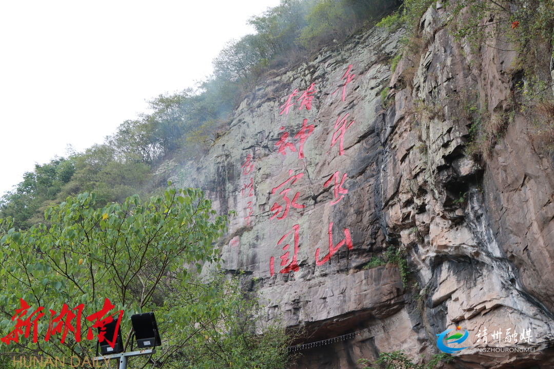 靖州融媒体中心9月1日讯 (记者 易子明)9月1日上午,经过两个月左右的紧张施工建设,靖州飞山景区内的“千年飞山、精神家园”摩崖石刻正式竣工并揭幕。