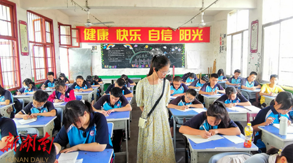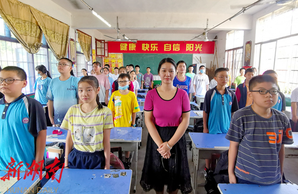新沅江客户端讯 (通讯员 陈宏群 郭浩阶)9月1日,上午第一节课铃声刚落,胭脂湖中学八年级班主任彭颖就已经笔直地站在学生中间。互致问候时,她用敏锐的眼光观察学生的站立姿势,告诫他们要腰杆挺直,精神抖擞。她说,“立如松”,就是要像松树一样直立。不可歪歪扭扭,东偏西倒。