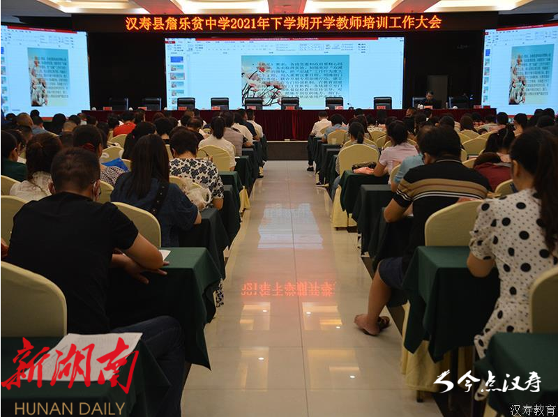 8月25日,詹乐贫中学在2021年下学期开学教师培训工作大会中,特别邀请县教育局教研室专家为全校教师作了题为《“双减”背景下的校本教研》的培训讲座。通过翔实的数据、细致的分析,让老师们对减负提质的必要性和专业教师的必备素养了解更加透彻。