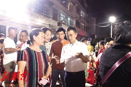 7月5日晚,在粟山社区开展“星期一夜校”暨创全国文明城市院落会议中,30多名群众围坐在一起,当面向县委书记陈历贤反映生活中的各种问题:“旧小区线路老化了”“车辆乱停乱放现象严重”“我们这缺少健身设备”……陈历贤手拿纸笔,一边倾听一边记录,并针对群众最关心的问题与群众进行了深入交谈。