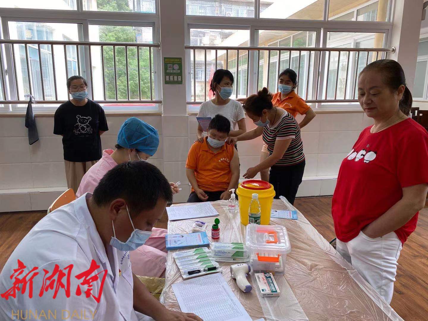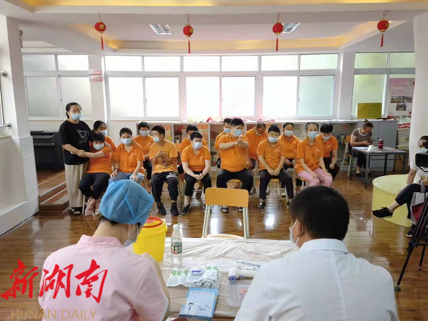 当天,特殊学员及居民在工作人员引导下,逐个有序接受医生的检查,一番询问后,能接的现场进行接种,有特殊病情不能接的,医生会告知赶紧去相关医院开证明,及时告知在旁边陪同的家长,家园老师也会在旁边做好登记。智障学员晶晶(化名)的母亲说:“我一直想让孩子接种,不仅更加保障身体健康,出行也更加方便。之前去过医院,但是队伍太长没有排上。这次社区和中心的安排真好,让我们感觉很贴心。”