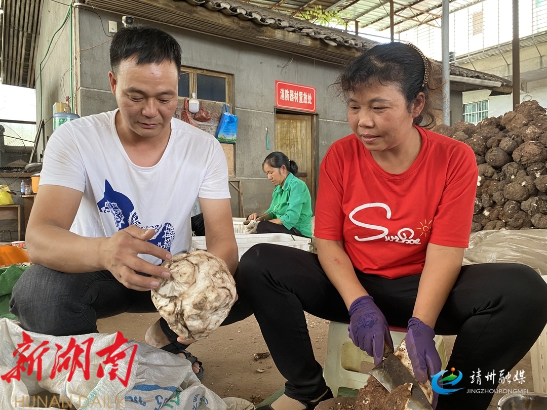 华亿茯苓科技有限公司董事长 指导工人切茯苓