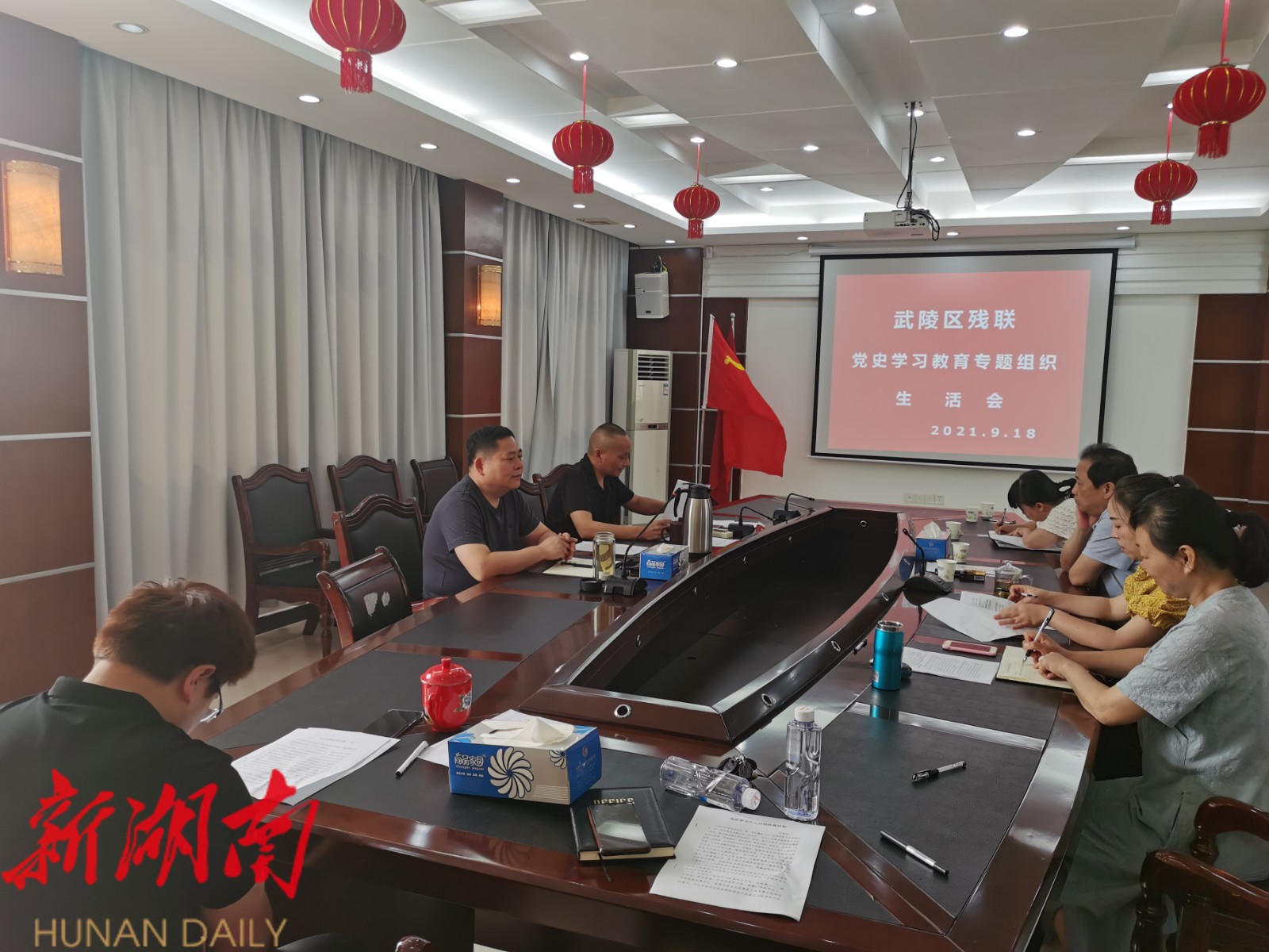 9月18日上午,常德市武陵区残联召开党史学习教育组织生活会,区党史督导组到会指导。