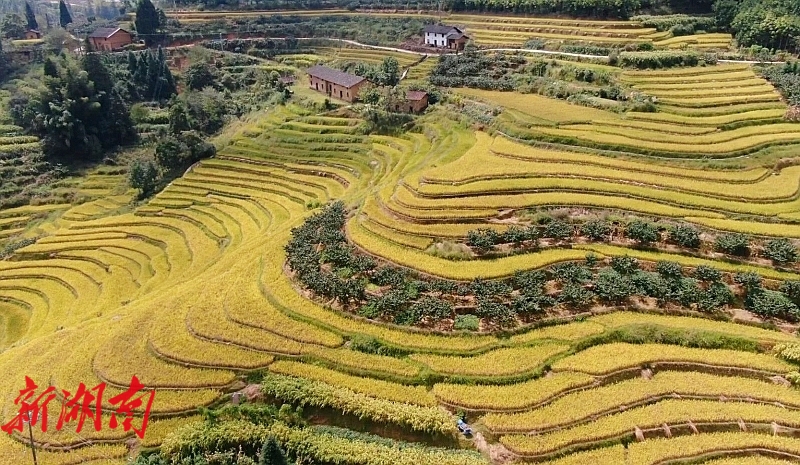 走进初秋的沤江镇禾坪村,只见梯田从山脚层层盘旋而上,高低错落,行云流水,与附近的村寨融合一起。梯田里的稻谷开始脱去青涩,转为金黄,目之所及都是令人心醉的丰收美景。