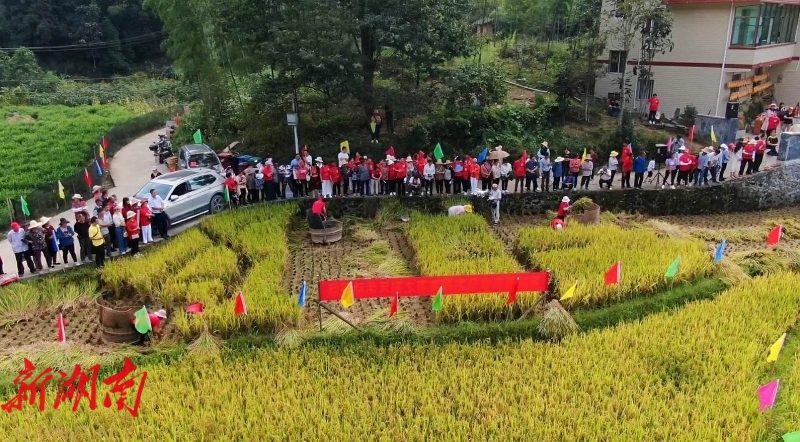桂东县融媒体中心9月23日讯(记者 郭慧稳)风吹麦浪,稻穗飘香。9月22日,在沤江镇禾坪村举行了“庆丰收、感党恩”暨2021年“我们的节日•丰收节”活动,吸引不少市民群众前来参加穿辣椒、割稻、徒手捉鱼等趣味农事竞赛,一同感受劳动的甘甜和丰收的喜悦。