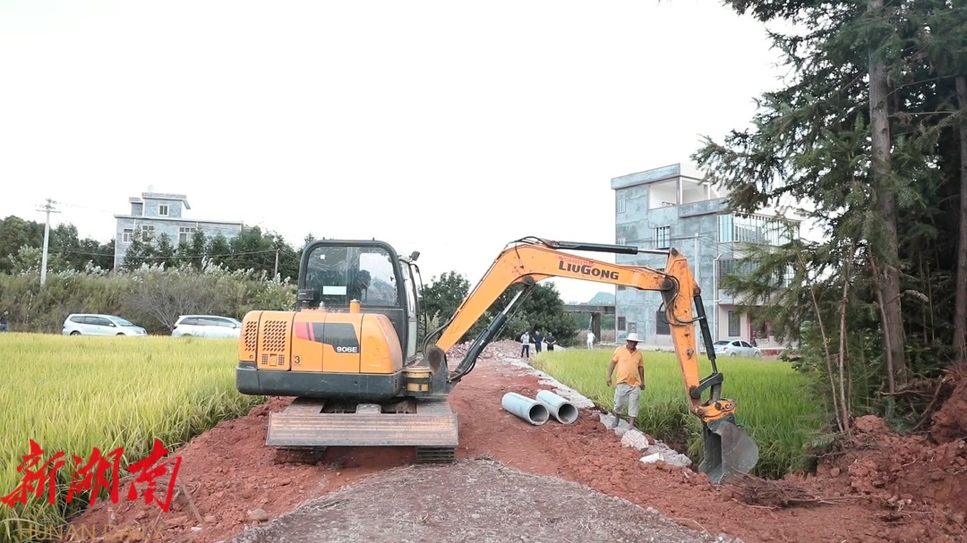 在晋屏镇下车村的产业路,施工人员正进行路基的地面工作。下车村是我县有名的蔬菜供应基地,产出的蔬菜直销粤港澳等地区。正在修建的这条路全长1.7公里,建成以后,货车装载的蔬菜将直接从这里运往粤港澳大湾区销售。
