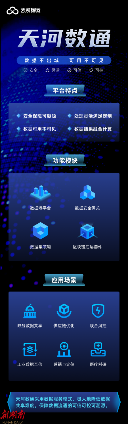 历经多年的技术积累与架构设计,公司内部经过多次打磨与版本升级,天河国云开发的具有自主知识产权的重磅产品——天河数通,于近日正式对外发布,直面确权鉴权难、隐私安全难、可信传输难、反馈评价难等核心痛点,真正实现“数据不出域,可用不可见”。