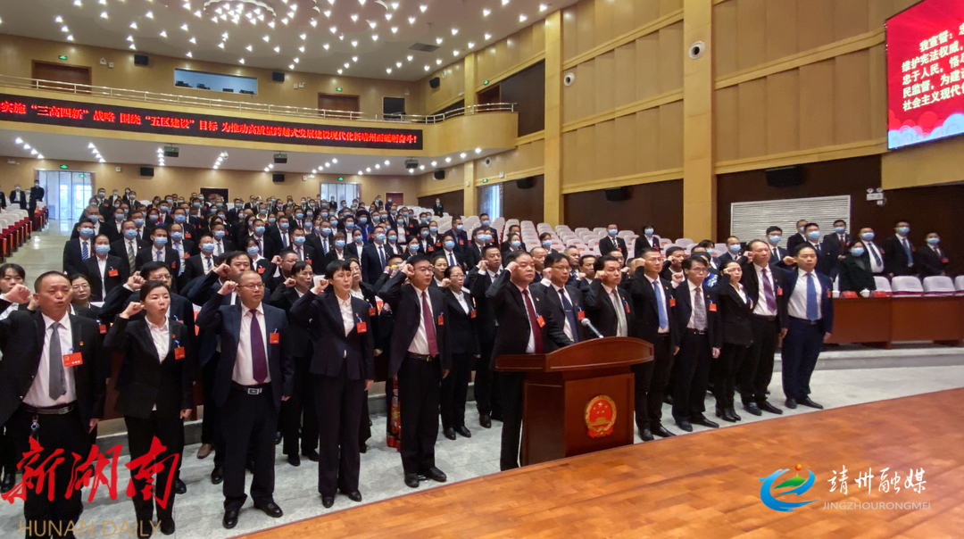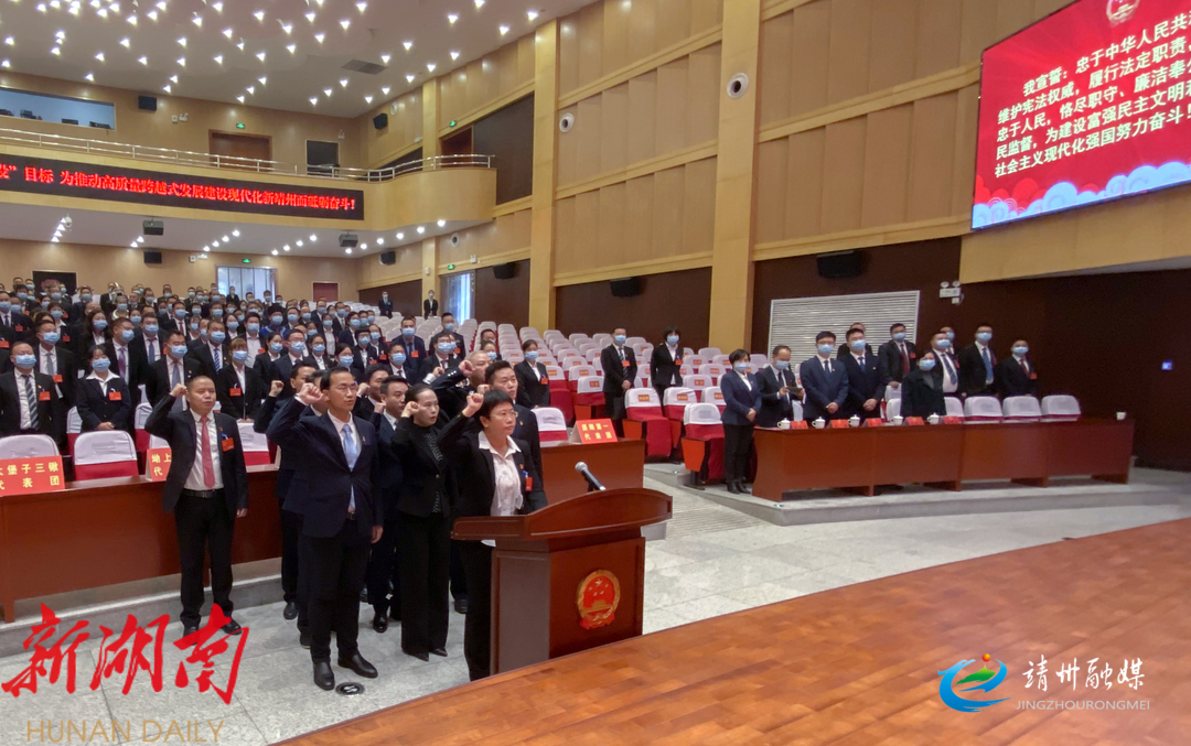 靖州融媒体中心10月26日讯 (记者 龙俊霓 王璨 舒鑫 胡耀文 徐鲁湘 )10月26日上午,县九届人大一次会议举行第三次大会,选举产生了新一届县人大常委会、县政府领导班子等。