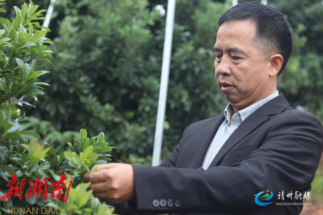 10月15日,天下着蒙蒙细雨,后山溪的杨梅基地里,靖州县梅园新村果业有限公司董事长吴长春正在查看杨梅树的花芽情况。