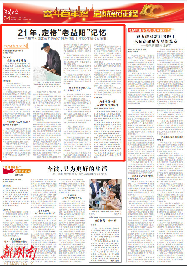 “保护和传承历史文化,有一分热发一分光。哪怕是点滴小事,也有作用。”周建成将自己的信念写在益阳古城这片热土上。