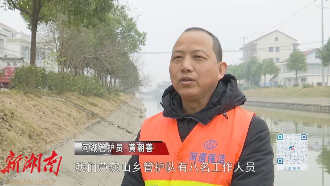 我们芦荻山乡管护队有八名工作人员,有两条船、三台机动车,每周坚持五天保洁工作。