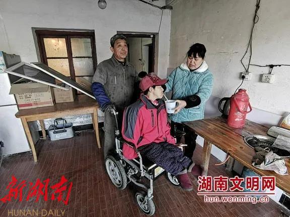 ▲康丕华(右一)在照顾重残小姑子。图片来源:湖南文明网
