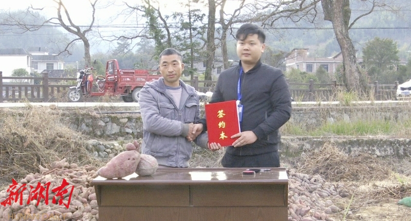 12月13日,一场特殊的签约仪式在寨前镇槐村村一块红薯地里举行。桂东宅云送电子商务有限公司与红薯种植户黄常春签订红薯采购协议,计划分两批采购红薯5万斤,彻底解决了黄常春的红薯销售问题。