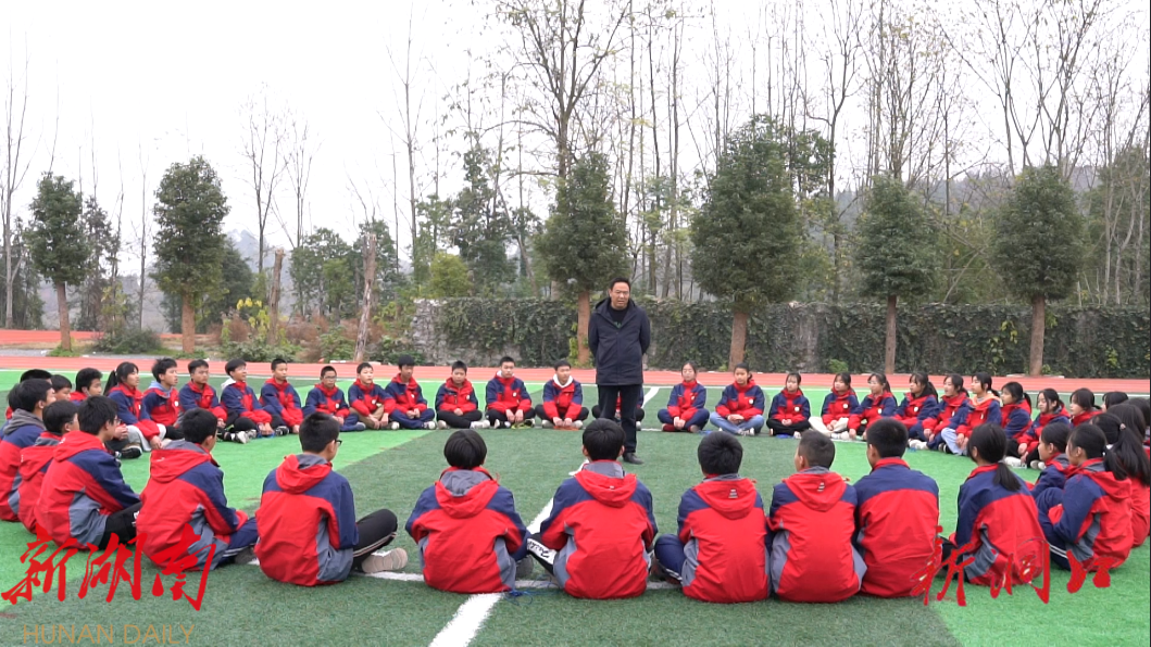 在石江镇中学操场,该校校长谭丁铁正在对学生进行体育运动课后服务。因为九年级学生中考有体育加试,班主任、体育老师将“跳绳”“中长跑”“立定跳远”和传统体育游戏引进课后延时活动中,让学生们在游戏中体验运动乐趣,提高身体素质。