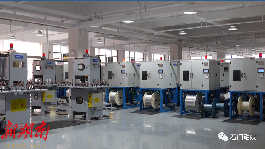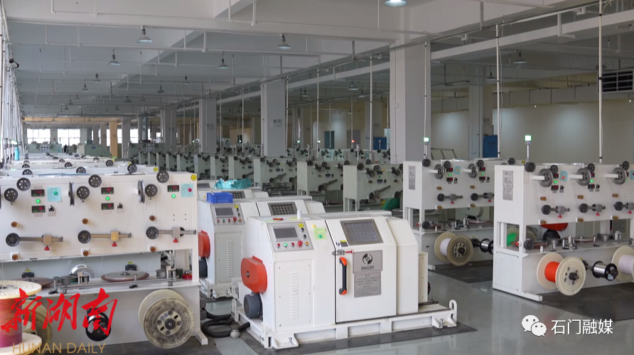 据了解,常德富博智能科技有限公司是石门县委县政府2019年重点招商引资项目之一,实现了当年签约、当年投产、当年纳税过百万,创造了实体工业项目建设的“石门速度”。去年12月,富博二期——常德富博传导材料科技有限公司成立,公司总投资 3.5 亿元,建设高标准线缆部和模具注塑射出部,目前已拥有各类自动化设备170余台,可生产各类超高频线束、汽车电子线束、数据线等产品。