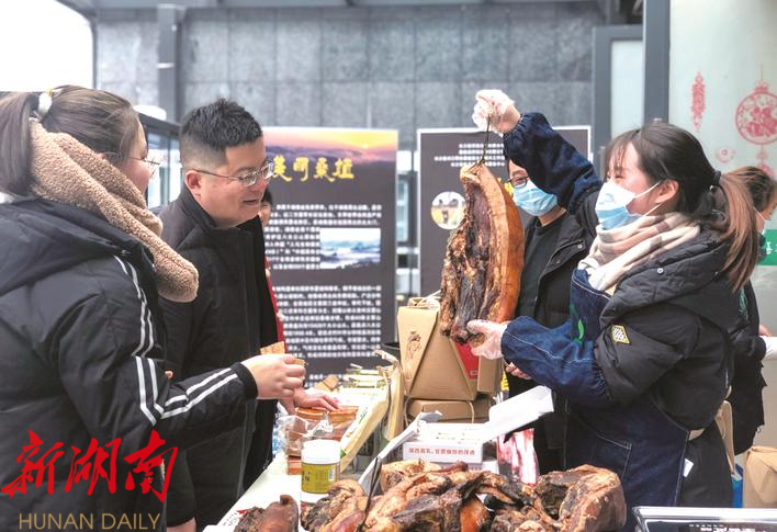 湖南日报·新湖南客户端12月31日(通讯员 李松 田媛媛)“这是我们湘西地道的农家腊肉,细嫩爽口,肥而不腻,星沙的朋友可以尝下。”近日,长沙县供销合作社联合社、长沙县对口帮扶桑植县乡村振兴工作组、长沙县电子商务公共服务中心携手桑植县供销合作社联合社、张家界数字乡村有限公司在长沙县政务中心开展“挑担腊肉上省城”桑植腊制品消费帮扶活动。