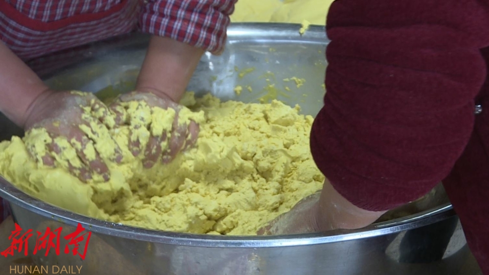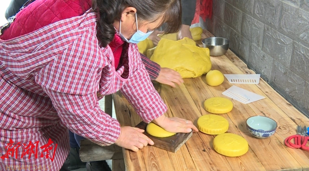 桂东的黄糍粑种类繁多,例如大禾糍粑、蒸笼糍粑、粉糍团、印花糍粑等。随着时代的变迁,许多人力劳动被机器代替,费时耗力的抖糍粑也大都由机器代劳,许多传统手艺也逐步失传。而做印花糍粑,虽然需要人力较多、手工程序较为繁杂,但却成为了联系亲友邻里关系的纽带。大家一起互帮互助,制作饱含美好寓意的印花糍粑,期盼着远方的亲人回家过年。
