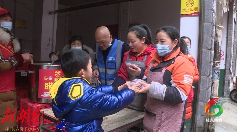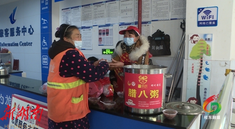 桂东县融媒体中心1月10日讯(记者 李亚芬) 1月10日,由县文明办、团县委主办,县好人协会、县星火志愿者协会协办,桂东县全家福大酒店赞助开展了以“温暖同粥,志愿同行”为主题的腊八节赠粥志愿服务活动。