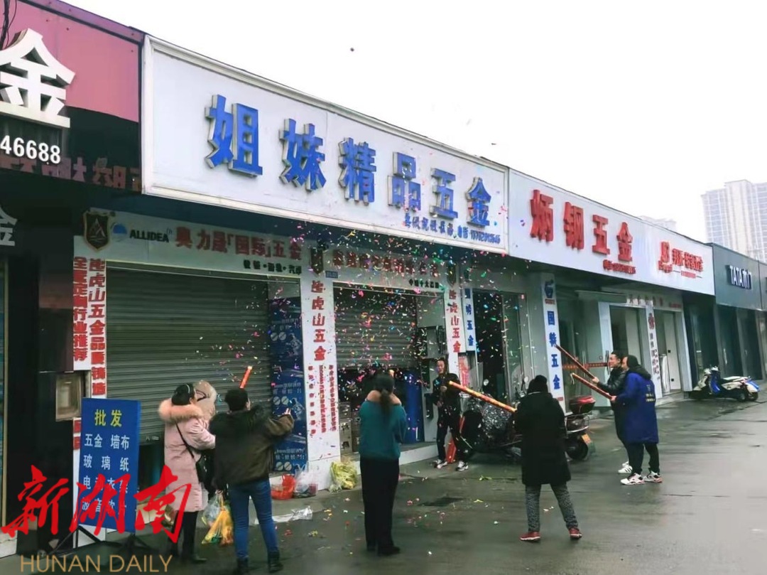 2月9日上午8时,芙蓉街道岩坪社区的兴隆装饰城里礼花齐放,热闹非凡。原来,这天大年初九,是装饰城年后开张营业的日子。商家们大都有商铺开业先放鞭炮的习惯,这天却全部放起了空气压缩式礼花。